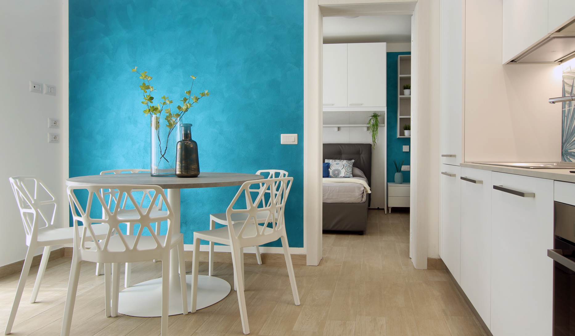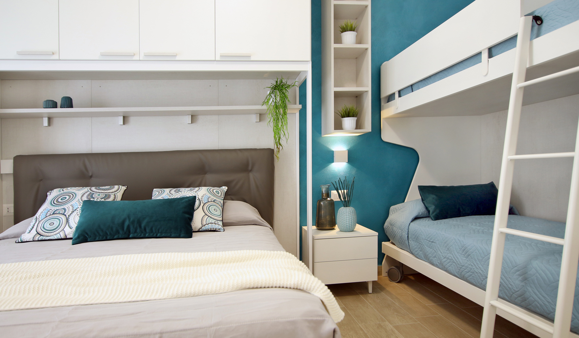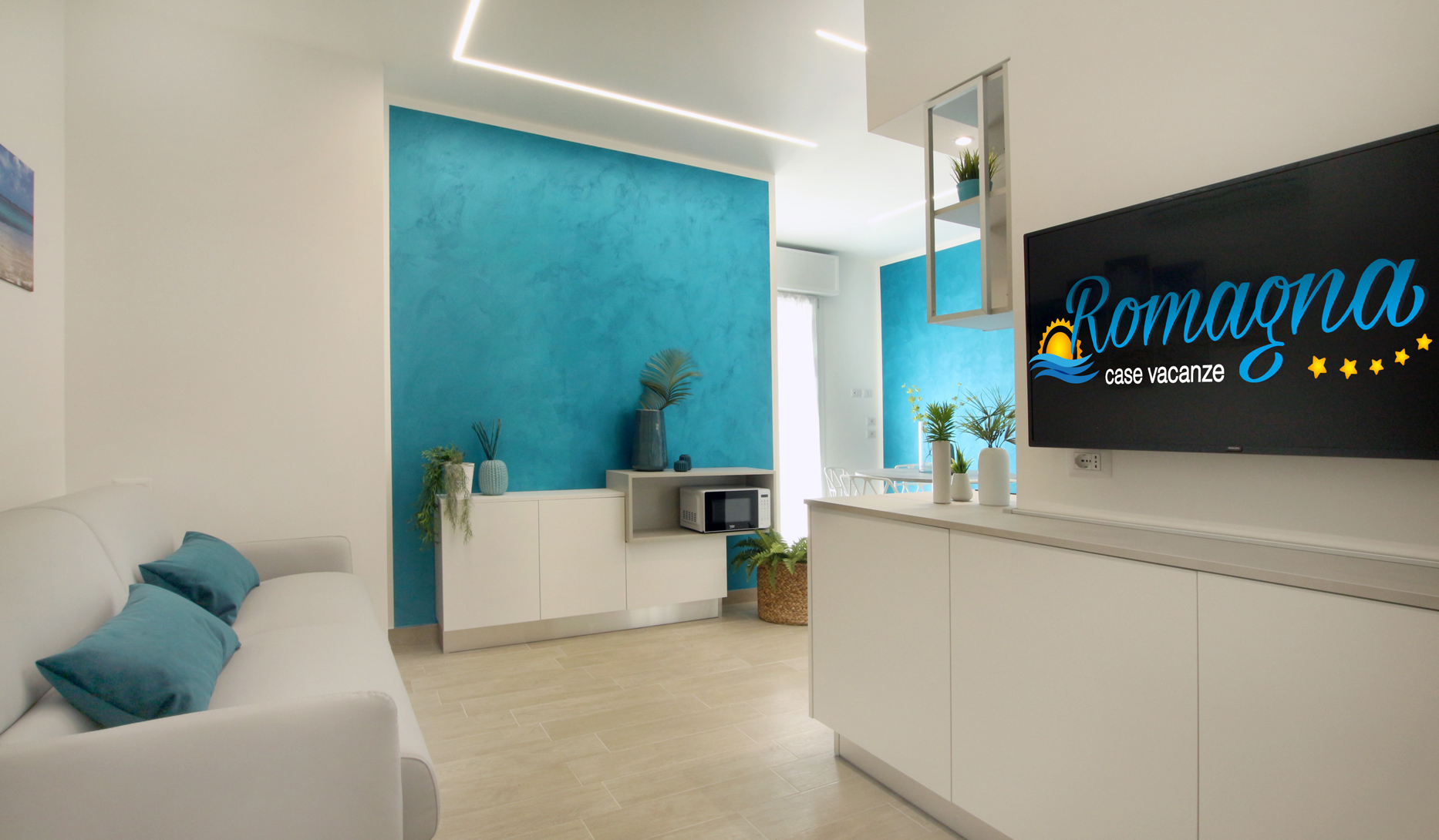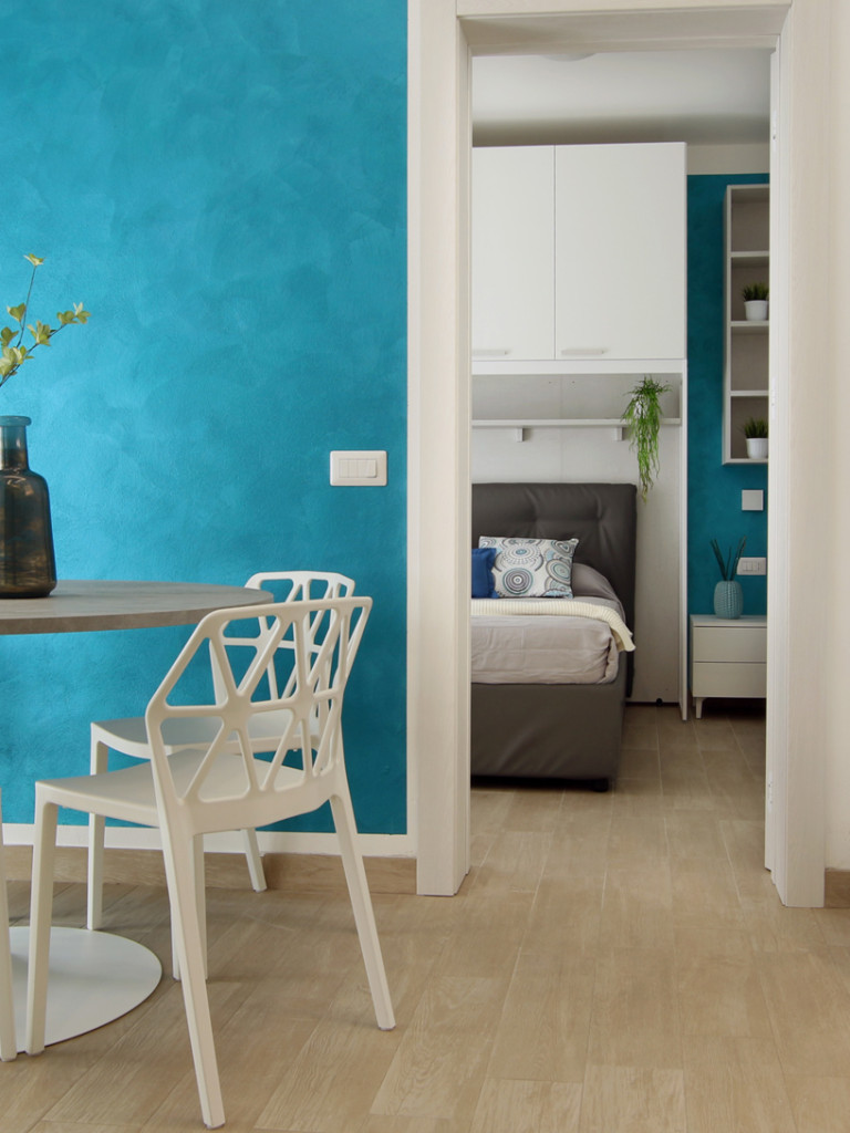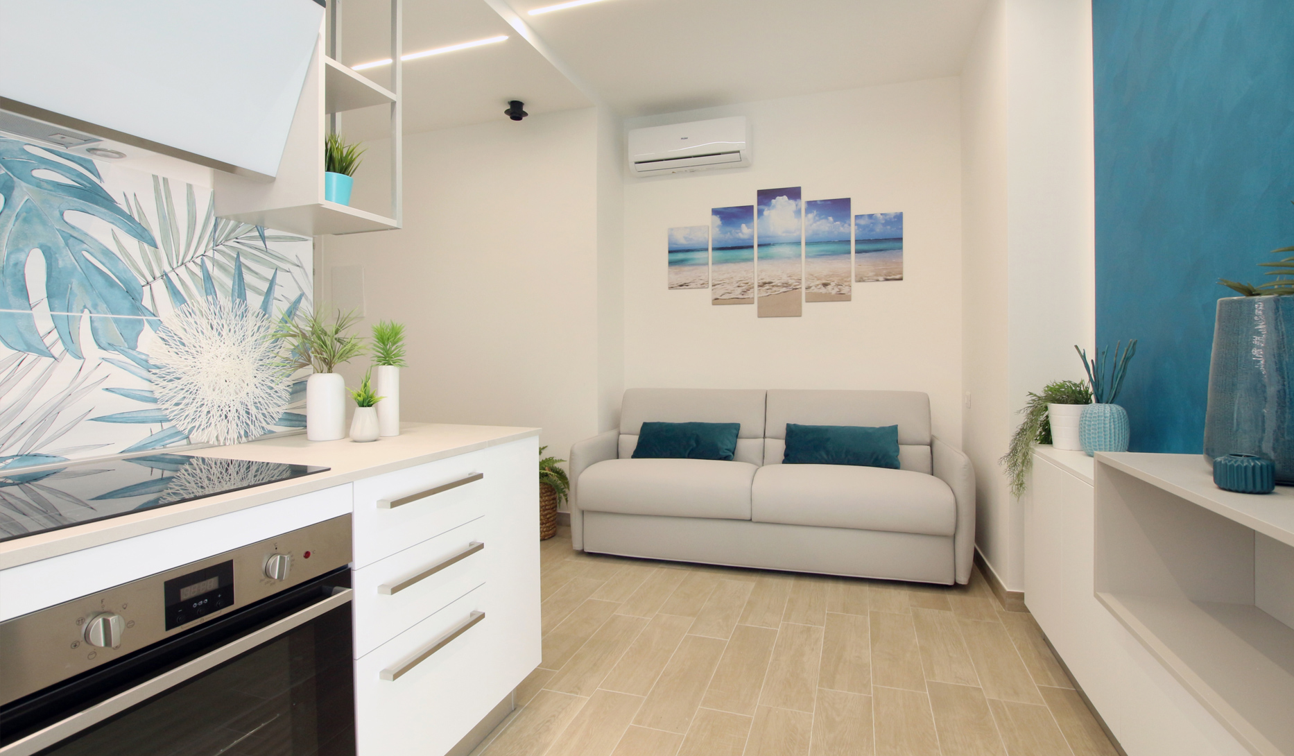Il bilocale Acquamarina, è il bilocale più “modaiolo” della nostra nuova struttura; lo caratterizza il color “pavone”, che dona un tocco di vivacità ma raffinatezza nello stesso tempo. La zona giorno è dotata di un comodo divano letto matrimoniale, cucina firmata Febal completa di tutto, e di un bel tavolo tondo per bellissimi momenti conviviali.
