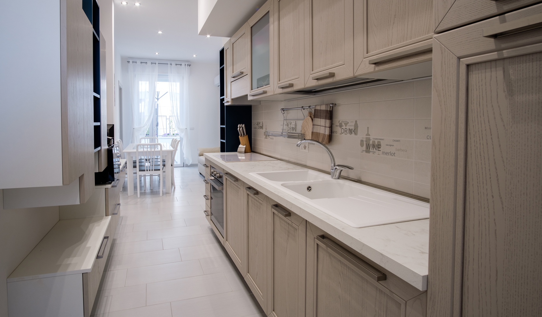 Appartamento al primo piano, in un elegante contesto totalmente ristrutturato, all’interno di una corte recintata. Si affaccia direttamente sulla spiaggia e sulla piazza principale del paese.
