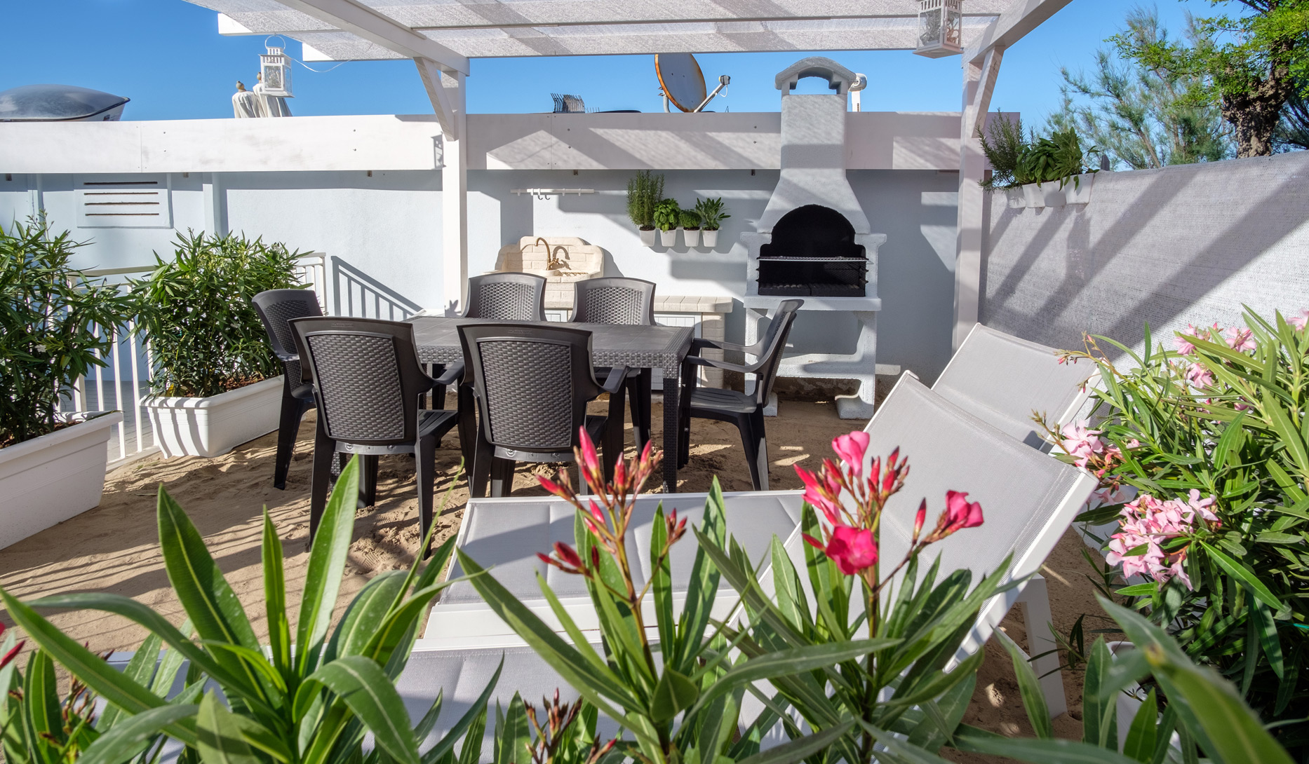 Le camere dispongono di terrazzino vista mare, mentre la cucina presenta un terrazzo attrezzato con salottino. Ideale per famiglie con bambini, o per chiunque voglia godere della perfetta posizione sulla spiaggia, e per partecipare alle serate organizzate dal San Mauro Mare Village, nella piazza o sul lungomare. Inoltre, per la massima sicurezza, è anche dotato di impianto di allarme anti intrusione. E per restare sempre connessi c’è anche il Wi-Fi gratuito.