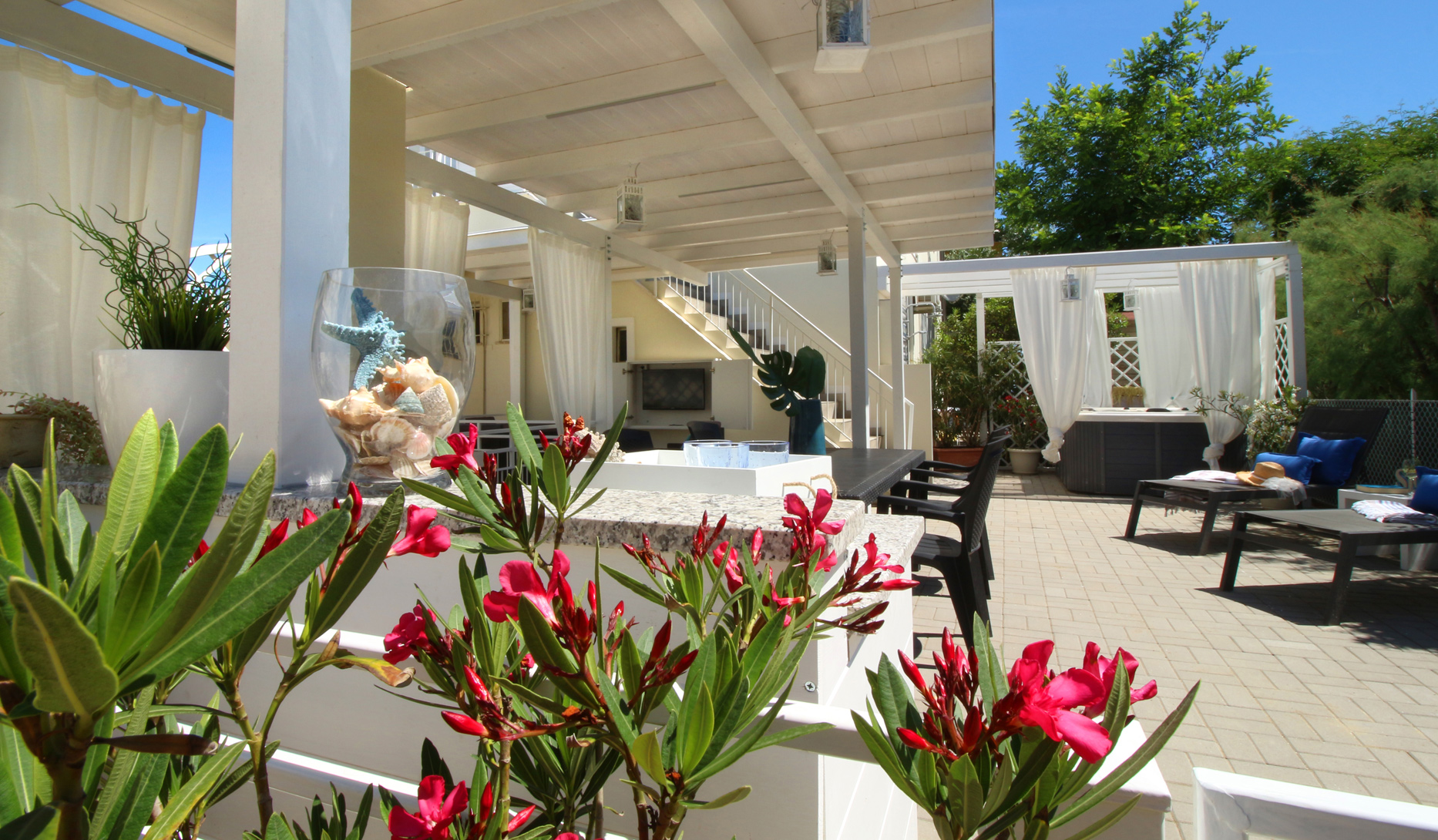 Al primo piano, direttamente sulla spiaggia di San Mauro Mare e a 100 mt. dalla piazza centrale. Questo appartamento gode di una stupenda area esterna, ad uso esclusivo, completamente recintata, con Jacuzzi, doccia esterna, tv e living esterni, barbecue e cucina esterna per bellissime grigliate in compagnia.