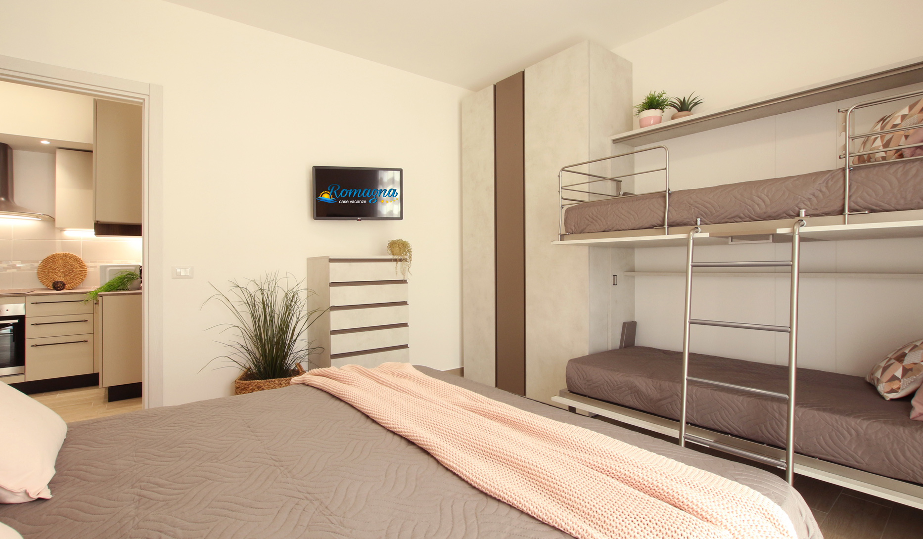 La camera da letto è dotata di un accogliente letto matrimoniale imbottito, e di letto a castello abbattibile, per adattarsi ad ogni esigenza. E’ l’appartamento ideale per una famiglia fino a 6 persone.