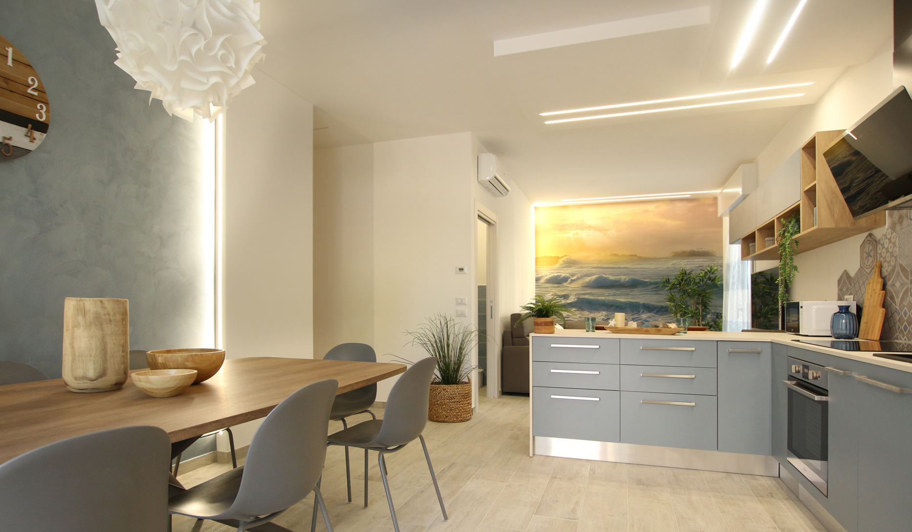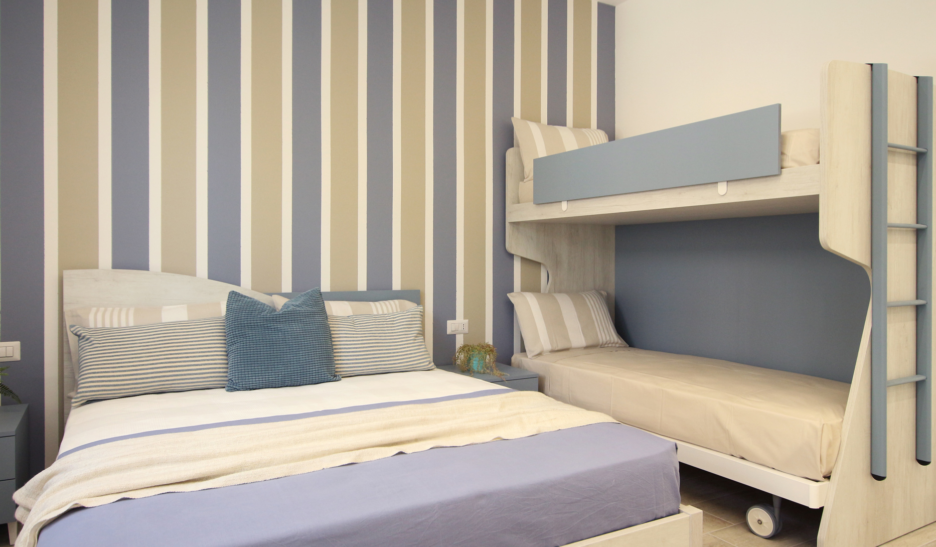 “Spazi ampi e generosi”: sono queste le prime parole che vengono in mente alla vista dell’appartamento Mare Mosso. Distribuito su due piani, terra e rialzato, l’alloggio vanta un accesso esclusivo ed indipendente, direttamente dal proprio giardino.